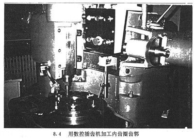 為了驗證所得加工數據的正確性,在正式加工之前,先用計算機進行圖形仿真。仿真主要是顯示一下刀具中心軌跡是否正確。因而可讓內齒圈固定不動,使刀具根據上述數據作平面運動的圖形仿真。確定數據正確后再開始正式加工,圖8.4為正在用數控插齒機加工內齒圈的齒廓。圖8.5為刷鍍以后的內齒圈及擺桿。