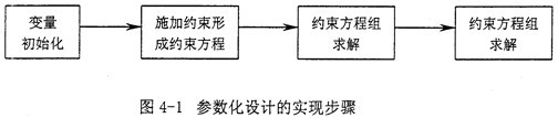 系,通過人工定義尺寸變量及它們之間在數值上和邏輯上的關系來表示。相應的,在參數化設計系統中,設計人員根據工程關系和幾何關系來指定設計要求,要滿足設計要求,不僅需要滿足尺寸或工程參數的初值,而且要在每次改變這些設計參數來維護這些基本關系,其中尺寸值是可以變的,而幾何元素的各種連接幾何信息是不變的。圖形參數化設計的本質是根據圖形中的不變約束,進行幾何求解,確定可變約束,產生新的圖形的過程。