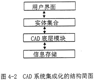 集成化CAD系統,從系統的整體結構上,在CAD系統的UI之上,建立集成化后工程實體的UI,通過UI進一步調用集成后的對實體操作的UI。在AUTOCADRl4的面向對象的集成開發,引入了ObjectARX技術,增加了對“類”的全面支持,應用了具有面向對象技術中“類”特性的實體模塊,將所有操作集成在若干類的函數或方法里,其體系結構簡圖見圖4-2。面向對象的CAD集成軟件主要包括了實體核心模塊、信息存儲模塊和用戶界面模塊。其中,實體核心模塊是最主要、最基礎的模塊,是它對CAD系統進行徹底的封裝,使得系統在用戶面前體現的不再是簡單幾何的點線圓,而是一個個工程實體;同時,它也是不同行業對CAD不同集成要求的具體體現。