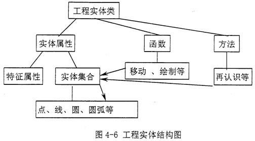 單個實體是通過點、直線、圓、圓弧等信息的集成而體現的,因此,在對實沐類進行定義時,可充分利用AutoCAD中的“實體集合”這個設計概念,把*.dwg圖形數據庫中的若干幾何信息集成起起來,使之成為一個整體,再將此“實體集合”并入實體類的一個屬性(見圖4-6),當實體在繪制、移動等操作中被調用。