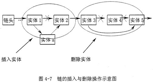 用戶對實體進行查找、移動、旋轉、刪除等操作,系統首先要在整個圖紙中搜索該實體,因而,系統必須對整個圖紙的實體的綜合信息進行存儲,多采用鏈式結構,設置一個鏈頭和一個指向當前實體的指針。采用鏈式結構的原因是它很方便進行查找、插入、刪除,效率高,簡單明了。(見圖4-7)
