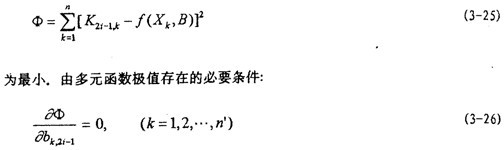 已知K2i-1 (A)是關于自變量X=[A,A2,…An1]T和待定參數B=[ b0,2i-1,b1,2i-1,…,bn′,2i-1]T的形式已知的函數(3-13),簡寫成: