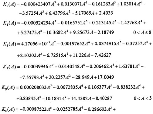 (A)=-5.16965×10-5A7+2.21538×0.0241174A5--0.375207A4+2.55596A3-8.88624A2+8.37136 (3-57)