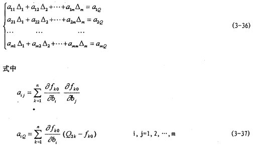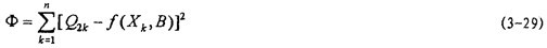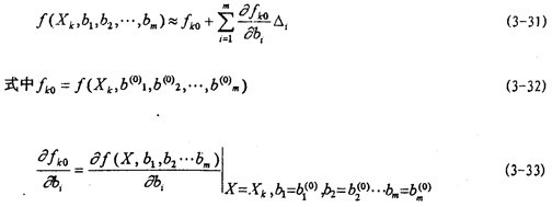 得一組線性方程組,在n>k的情況下,聯立求解這一線性方程組即可求得唯一的一組B值。根據此法求得(3-13)式中參數值并代回可得: