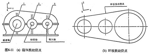 為了將理論分析的結果與振動測試分析結果對比印證,將測點選在三個箱體軸承座及齒板支承軸孔的上邊緣,如圖6-11所示。