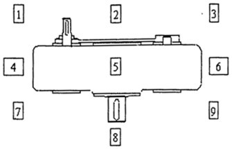 在減速器的噪聲測量中(見圖4.4),分別對減速器空間九個特定點*,在A計權網絡下測量其聲壓級的大小,表4.7中的數據為該減速器的平均聲壓級;在減速器的振動測量中,主要對輸入和輸出軸進行振動(位移、速度、加速度)測量以及分析,下表中的數為該減速器的最大位移量,即輸入軸的。