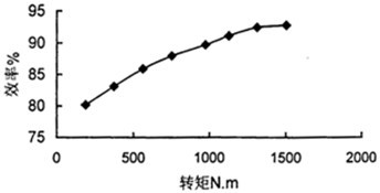 圖4.5為減速器的傳動效率與輸出轉矩的關系曲線。從圖4.4可以看出,該減速器的傳動效率隨著轉矩的增大而增大,開始時增加較快,隨著轉矩的不斷增大而趨于平緩。在額定工況時,齒面達到熱平衡時溫升僅為45°。