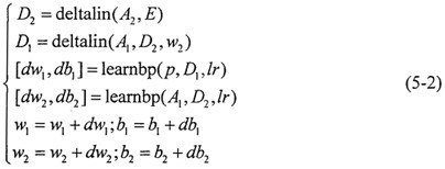 SSE=sumsqr (T-pruelin(w2*tansig(w1*P,b1),b2)) (5-3)