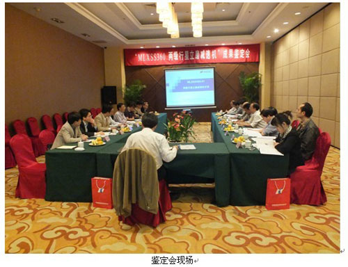 會議期間,高精公司副總經理陳勵國先生就MLXSS360兩級行星立磨減速機的研發過程以及公司未來新品開發情況向與會專家作了簡約介紹。高精公司技術中心建材事業部楊兵部長及劉洋工程師分別向鑒定委員會作了詳細的工作報告、研究報告、社會經濟效益和用戶使用報告。