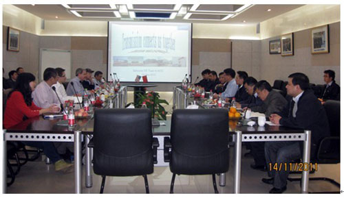 南高齒胡董事長對GE的來訪表示熱烈的歡迎,并致歡迎辭。南高齒風電設備工程師向GE一行介紹了公司的總的發展情況,包括人員、產值、設備、試驗臺、產能、新廠區的建設等,并總結了2011年風電齒輪箱(主齒輪箱以及偏航變槳齒輪箱)的發貨情況,2011年主齒輪箱的發貨量將超越1000臺,偏航齒輪箱、變槳齒輪箱均將超過1000套,這也是南高齒與GE合作以來首次年度發貨量同時超越1000。