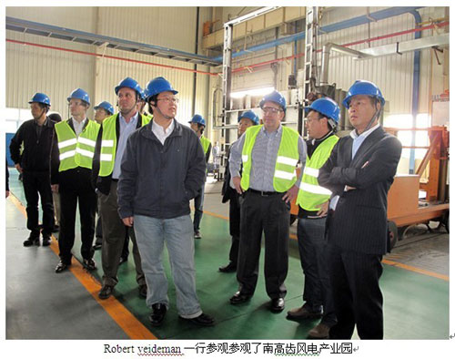 隨后,GE一行在高速公司總經理劉建國先生的陪同下,興致勃勃地參觀了南高齒風電產業園。 Robert veideman一行對NGC高速的發展以及現場的現代化管理給予充分的肯定與表揚,也對明年的合作更加充滿信心。