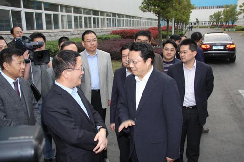 4月12日下午,中共江蘇省委常委、南京市委書記楊衛澤一行在市委常委、市委秘書長劉以安、市委常委、江寧區委書記周謙等有關部門的領導人陪同下,來到南高齒集團400畝風電基地視察調研。集團董事長兼總經理胡曰明向楊書記一行匯報了近年來企業發展情況和未來企業二次創業基本架構。集團黨委書記金懋驥、集團副總經理劉建國參加了接待。