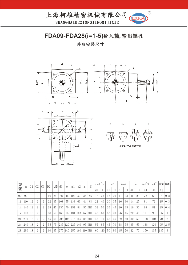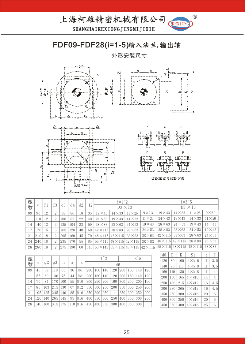 6、提供底腳安裝和法蘭安裝形式,可提供雙輸入軸形式,可實現多出軸,輸出軸可提供實心軸、空心軸單鍵、空心軸花鍵形式。