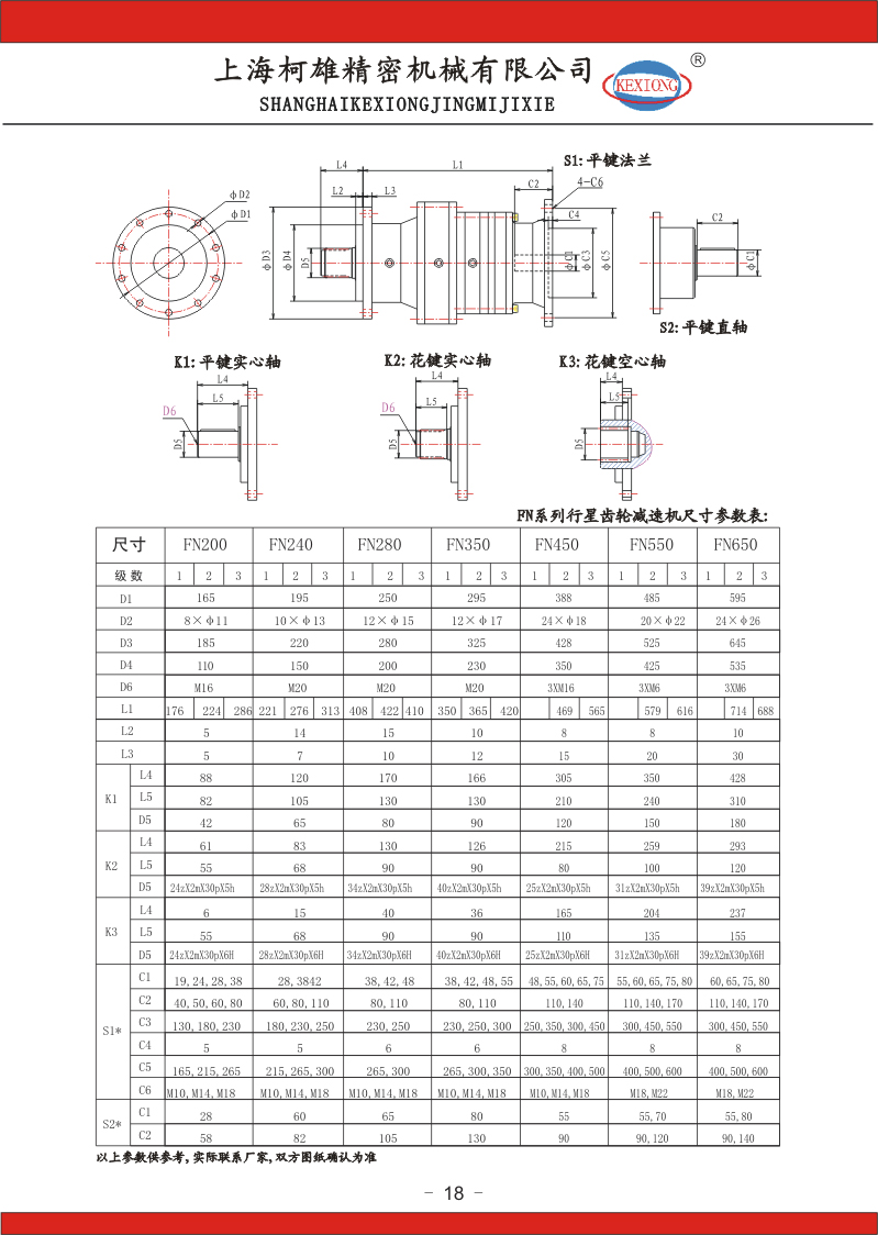 7、FN行星齒輪減速機產(chǎn)品有12種機型,速比為1:3-1:10000,傳動級數(shù)分1-4級。