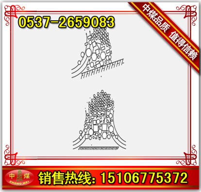煤矸石中可燃物主要黃鐵煤和煤而氧氣及熱量積聚環(huán)境與其堆積結(jié)構(gòu)關(guān)。矸石山在自然堆放(平地或順坡堆放)過程中均會發(fā)生矸石粒度偏析在矸石山內(nèi)產(chǎn)生“煙囪效應(yīng)”(如圖所示)。氧化產(chǎn)生熱量-部分由“煙囪效應(yīng)”隨空氣帶出另一部分則積聚在矸石山中。當(dāng)某-局部溫度達到自燃點時便引起自燃且逐步向四周蔓延。