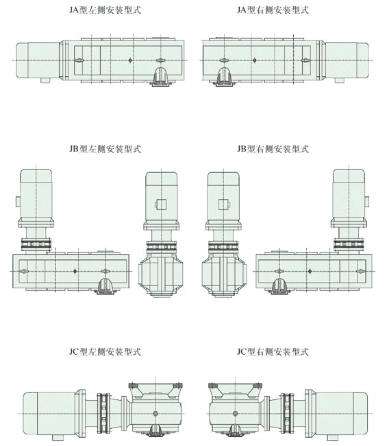 當前位置:減速機首頁 >> 產品大全 >> 特種專用減速機 >> JA、JB、JC系列滾輪架專用減速機 >> J系列滾輪架專用減速機安裝形式 |