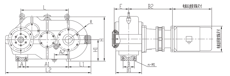 JB型滾輪架專用減速機(jī)外型及安裝尺寸 |