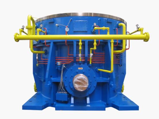 近年來隨著國內水泥工業的飛速發展,水泥粉磨生產設備日益大型化、重型化,而立式雙行星結構(一級螺傘+二級行星)是大功率立式磨機減速機完善、穩定的傳動結構解決方案。2009年南高齒成功研制國內首臺3600kW雙行星立式磨機減速機,2011年該產品通過中國建筑材料聯合會新產品鑒定,鑒定委員會一致認為該產品整機性能達到國際先進水平。同年11月,南高齒成功研制5400kW雙行星立式磨機減速機,該減速機為當時國內功率最大的雙行星立式磨機減速機。如今,南高齒的設計及生產檢驗能力進一步得到用戶認可,將再次實現自我突破,為市場提供6000kW級雙行星立式磨機減速機。