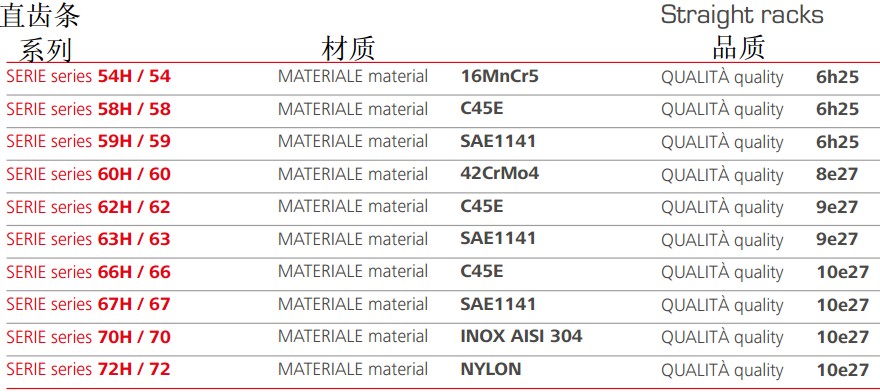 Gambini可使用不同類型的原材料生產高精度的直齒條和斜齒條。我們生產的齒條模數范圍為0.530,品質等級范圍為510。品質等級為5的齒條最大長度為1000mm,如果品質等級為6,可生產的單件長度可達2000mm.