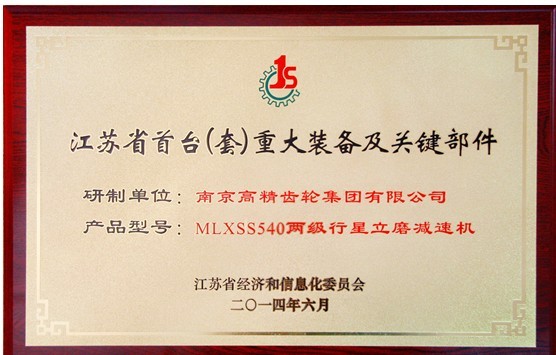 近日,南高齒齒輪集團子公司——南京高精齒輪集團有限公司獲得由江蘇省經(jīng)信委頒發(fā)的認定證書,公司自主研制的“MLXSS540兩級行星立磨減速機”被認定為江蘇省首臺(套)重大裝備。江蘇省首臺(套)重大裝備及關(guān)鍵部件的認定和應用示范,旨在鼓勵發(fā)展高端制造領(lǐng)域自主研制的高新技術(shù)裝備、大型成套裝備及其關(guān)鍵部件。