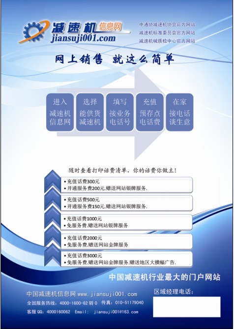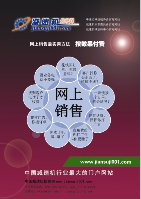 1、在減速機信息網會員后臺填寫你接業務的電話號碼 2、選擇你能銷售的產品。 3、在自己帳戶里充值話費。 4、開通網上銷售。 5。在家等業務電話,銷售產品。