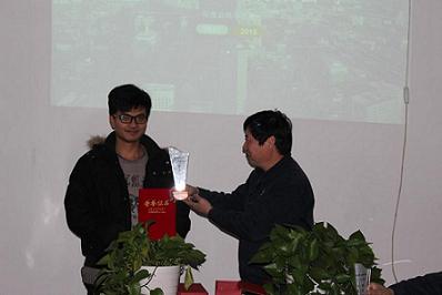 大會的第三部分——2015年度公司師道獎以及優秀員工獎的評選,在全體員工的票選下,生產部經理周保坤、工程技術中心何立東獲得師道獎;生產部的趙水林、韓毛孩獲得優秀員工獎。總經理為他們頒發榮譽證書和獎杯。