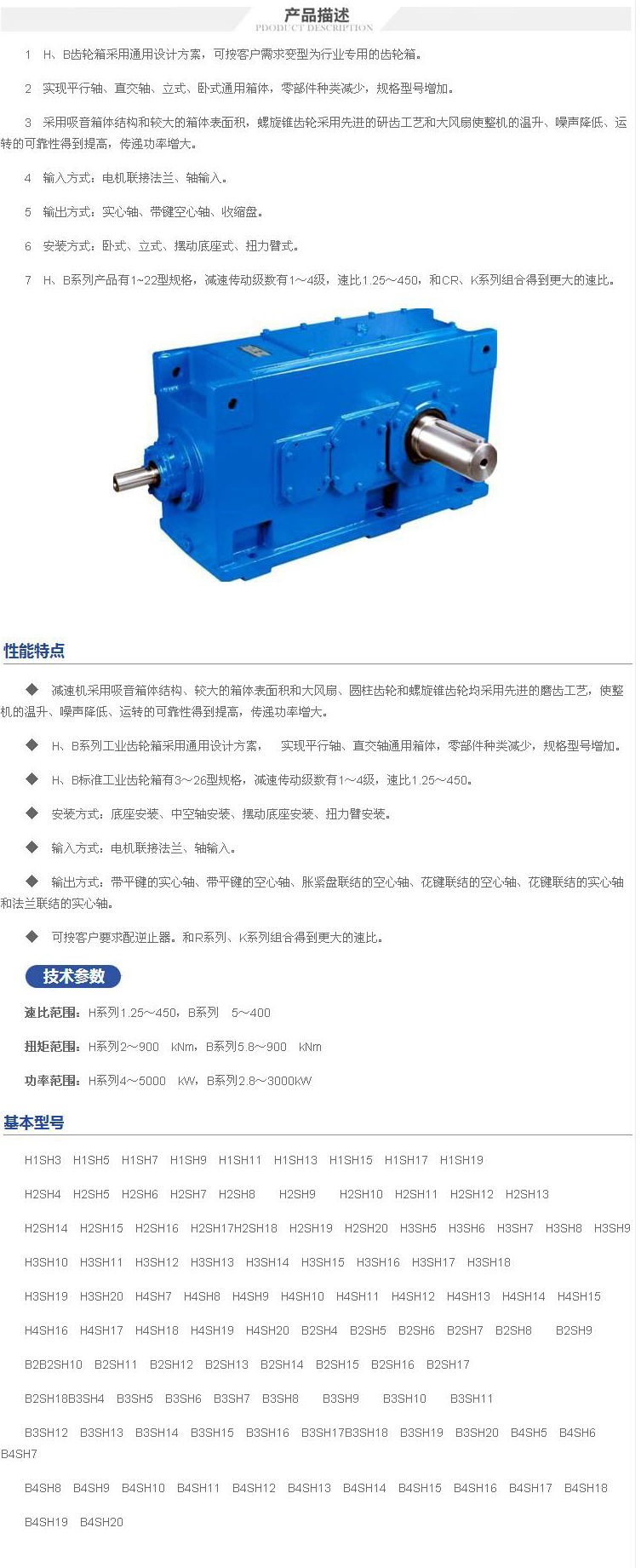 1 H、B齒輪箱采用通用設(shè)計方案,可按客戶需求變型為行業(yè)專用的齒輪箱。
