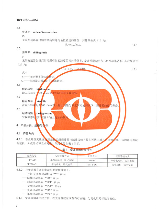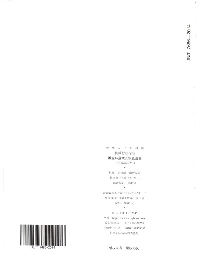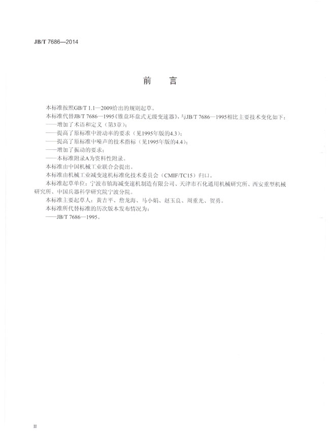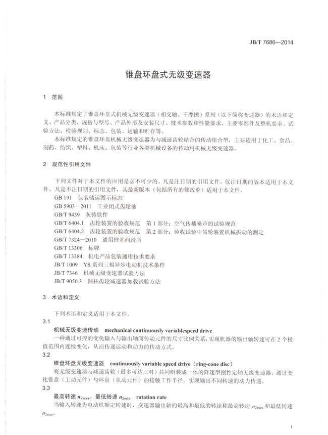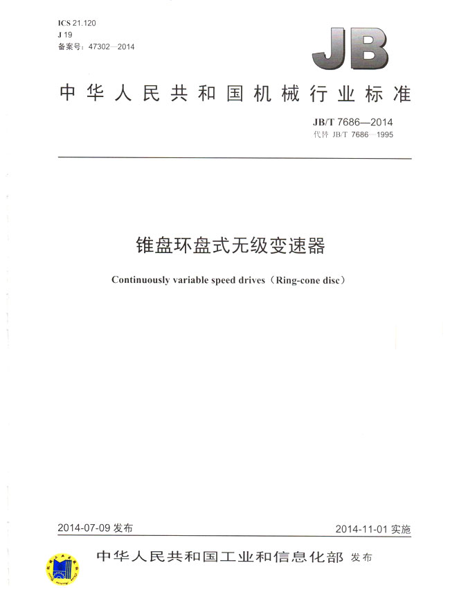 >>錐盤環盤式無級變速器(JB/T7686-2014)