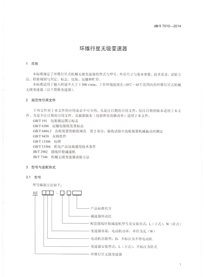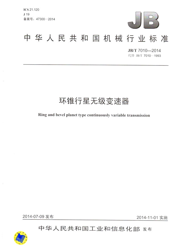 環錐行星無級變速器(JB/T7010-2014)