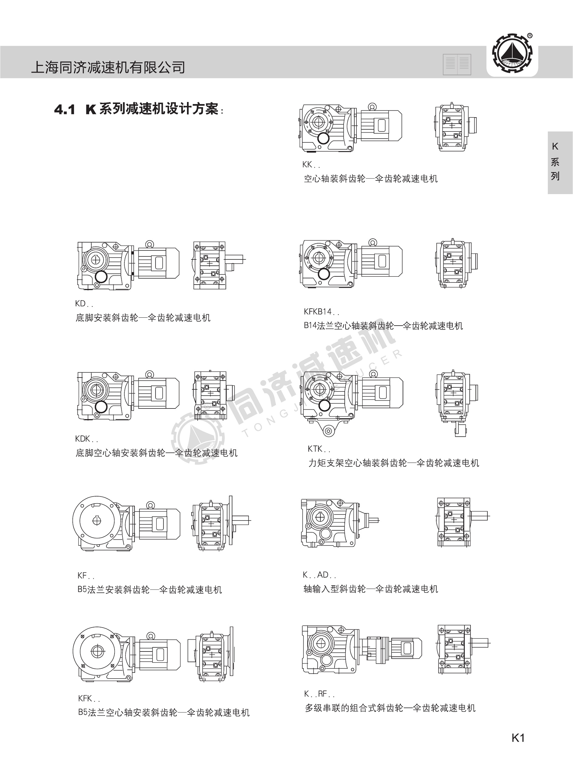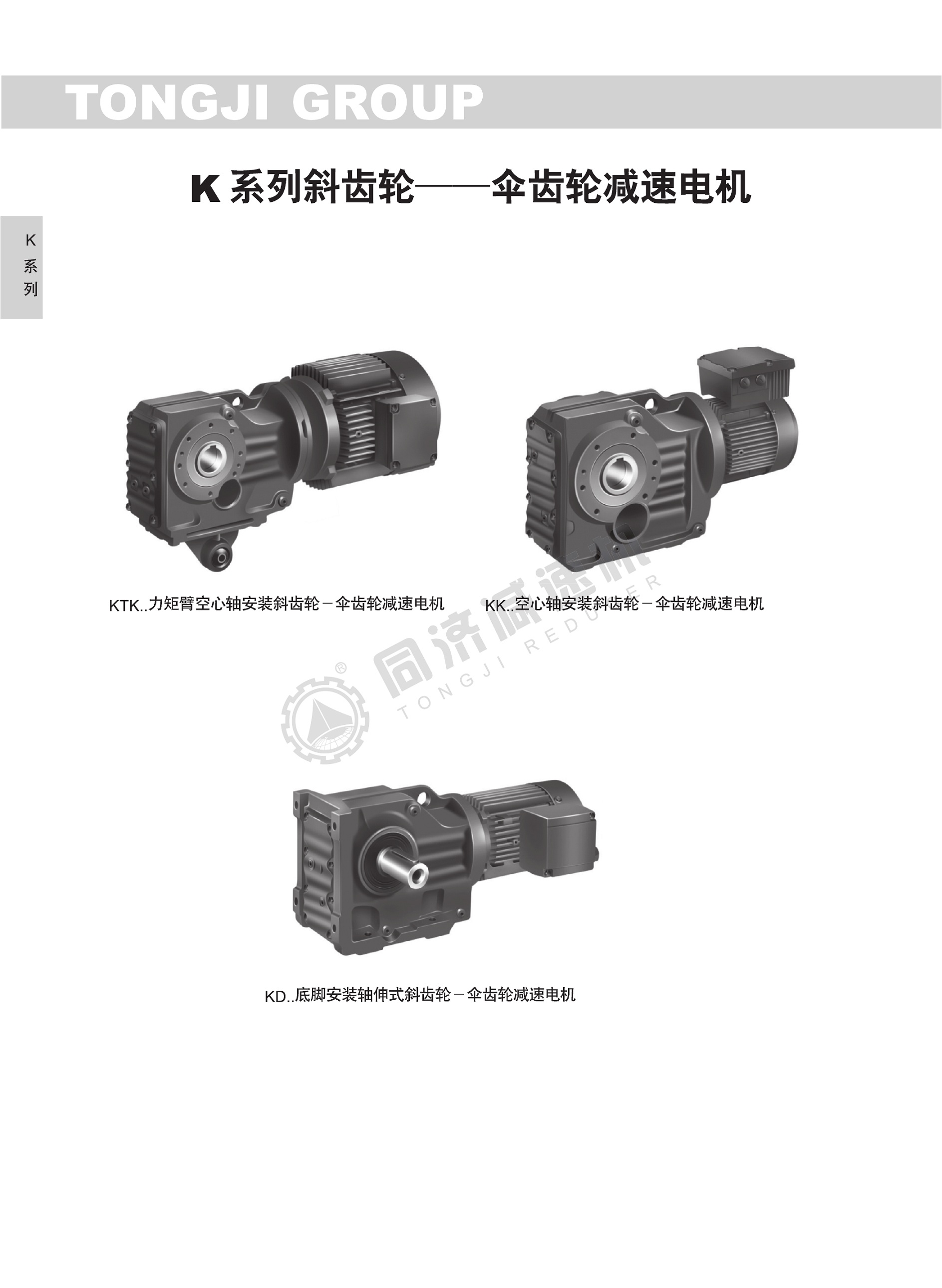 K系列減速電機其齒輪的齒線為圈弧形,重疊系數大、承載能力高、磨損均勻、噪聲小、