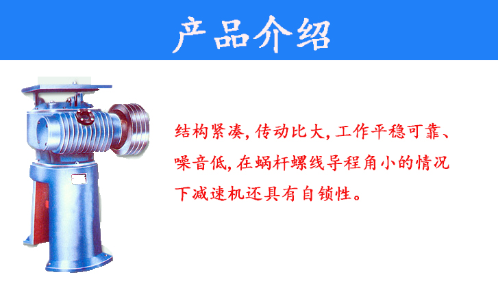 結(jié)構(gòu)緊湊,傳動比大,工作平穩(wěn)可靠、噪音低,在蝸桿螺線導(dǎo)程角小的情況下減速機還具有自鎖性。