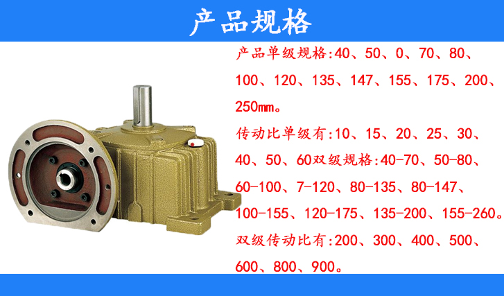 1、傳動平穩(wěn)、振動、沖擊和噪音均小,減速比大,通用性廣,能與各種機械設備配套使用