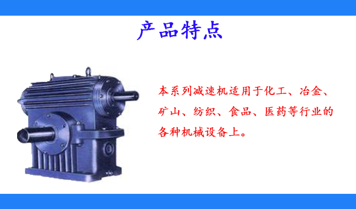 本系列減速機為單級傳動的阿基米德圓柱蝸桿減速機,結構緊湊,體積小,重量輕,傳動平穩、靈活,無沖擊無噪音,具有自鎖作用,使用方便。