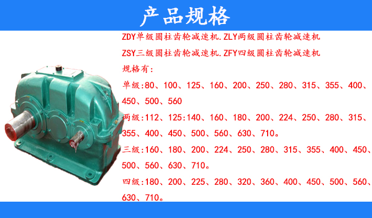 1、ZDY單級圓柱齒輪減速機(jī),ZLY兩級圓柱齒輪減速機(jī),ZSY三級圓柱齒輪減速機(jī)ZFY四級圓柱齒輪減速機(jī)。