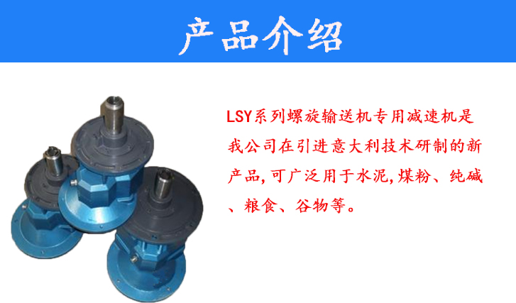 LSY系列螺旋輸送機專用減速機是我公司在引進意大利技術研制的新產品,可廣泛用于水泥,煤粉、純堿、糧食、谷物等。