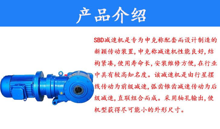 SBD減速機(jī)是專為申克稱配套而設(shè)計制造的新穎傳動裝置,申克稱減速機(jī)性能良好,結(jié)構(gòu)緊湊,使用壽命長,安裝維修方便,在行業(yè)中具有較高知名度。該減速機(jī)是由行星擺線傳動為前級減速,弧齒錐齒減速傳動為后級減速,直聯(lián)組合而成。采用軸孔輸出,使機(jī)型獲得盡可能小的外形尺寸。
