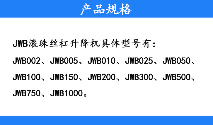 JWB002、JWB005、JWB010、JWB25、JWB50、JWB100、JWB150、JWB200、JWB300、JWB500、JWB750、JWB1000
