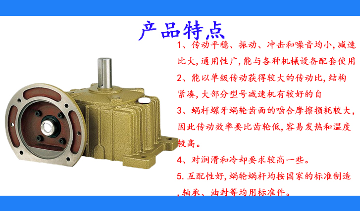 1、傳動平穩、振動、沖擊和噪音均小,減速比大,通用性廣,能與各種機械設備配套使用