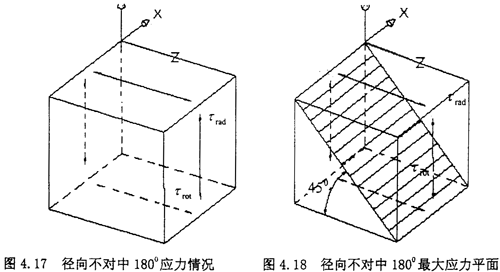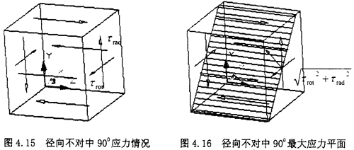 由圖示可知,此時單元體的受力其實(shí)是屬于純剪切狀態(tài),只是此時的剪切應(yīng)力為τrad與τrot的疊加。此時剪應(yīng)力τrad與τrot的方向相反。所在最大應(yīng)力有所抵消。