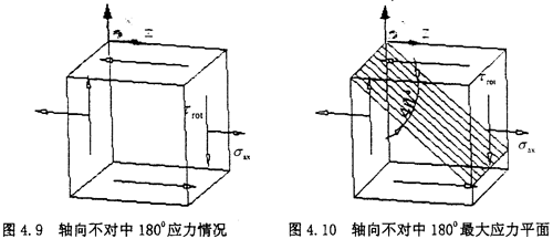 由式(4-39)可知,最大應(yīng)力平面剛好在垂直于正弦矢量相加的方向。這與徑向不對中90°位置的情況有些相似。