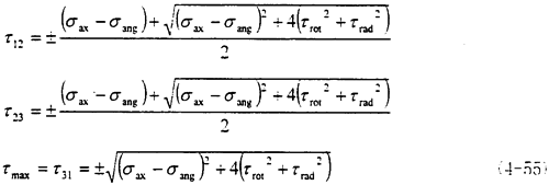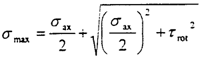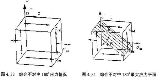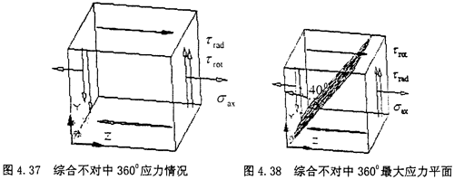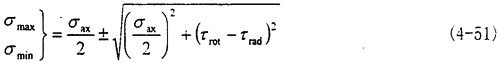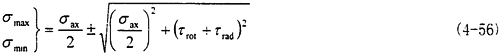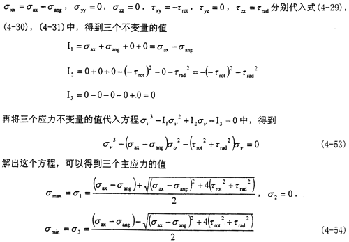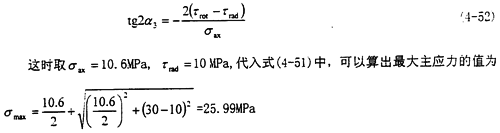 這時(shí)取σax=10.6MPa,τrad=10MPa,代入式(4-56)中,可以得出最大主應(yīng)力值為
