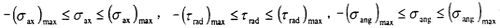 根據(jù)上面的分析,可以知道聯(lián)軸器在綜合受力的情況下,其總的應(yīng)力情況與四個(gè)量有關(guān),也就是σax、τrad、σang與τrot的疊加。為了能夠更加形象直觀地描述由于不對(duì)中量產(chǎn)生的附加應(yīng)力與總應(yīng)力的關(guān)系,下面進(jìn)行曲線的擬合?紤]到σax與σang方向都在同一直線上,而τrad與τrot的方向也在一條直線上,但是這兩條直線相互垂直。所以以σ為橫坐標(biāo)軸,τ為縱坐標(biāo)軸建立坐標(biāo)系后。各個(gè)不對(duì)中量都有一個(gè)范圍,因而由不對(duì)中量引的附加應(yīng)力也有一個(gè)范圍,