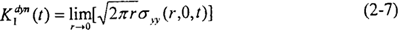 本節(jié)的討論范圍限于I型裂紋快速擴展問題,主要目的是給出與斷裂力學參數(shù)相應的動態(tài)應力強度因子、動態(tài)能量釋放率和裂紋尖端張開角的表達式。