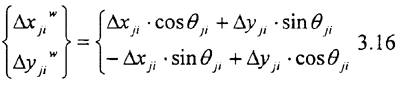 ,Δψ,Δθ為微小位移,則外齒輪任意一點PW(XPW,YPW,ZPW)在外齒輪相對內齒輪發(fā)生位移后,在靜止坐標系內的坐標為:PW(XP,YP,ZP)其值由式3.12~3.13定。