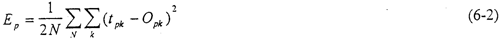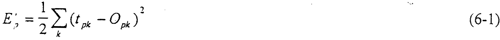 前饋網絡的訓練學習是一種監督學習,而監督學習的范例要求每一個輸入模式矢量與表示所期望的輸出模式矢量必須配對。一般說來,網絡輸出值{OPK}與期望的輸出值{tPK}是不相等的。對每一個輸入模式的模式樣本,其平方誤差