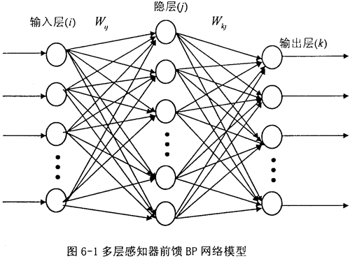 BP算法即是誤差反傳訓練算法,它是一種有導師的訓練算法,它在給定輸出目標的情況下,按其實際輸出與目標值之差的平方和為目標函數,通過調節權值使目標函數達到最小值。多層感知器前饋BP網絡模型如圖6-1所示。