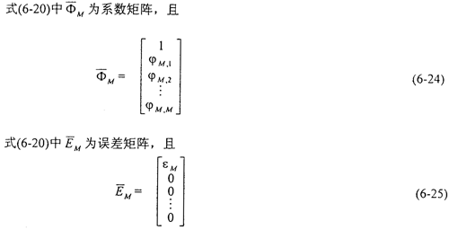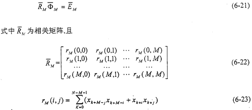 相關矩陣(6-22)式表示為Toeplity矩陣和Hankel矩陣相乘,使求解AR(M)模型參數
