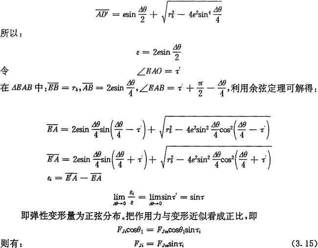上式中:FJm為對應(yīng)最大變形處的作用力;FJi為激波器對第i個(gè)推桿的作用力;τi為第i個(gè)推桿內(nèi)滾子中心與激波器短軸所夾的圓心角。如圖3.2所示。