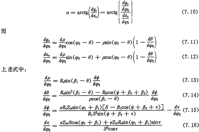 之內(nèi),只能使整個齒廓曲線的一部分由方程式(7.9)正確表示。為了使齒廓上所有的點都能用方程式(7.9)來正確計算,α的表示式應為: