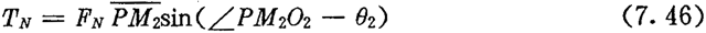力FN對擺動中心P點的扭矩TN是順時針方向,數值為: